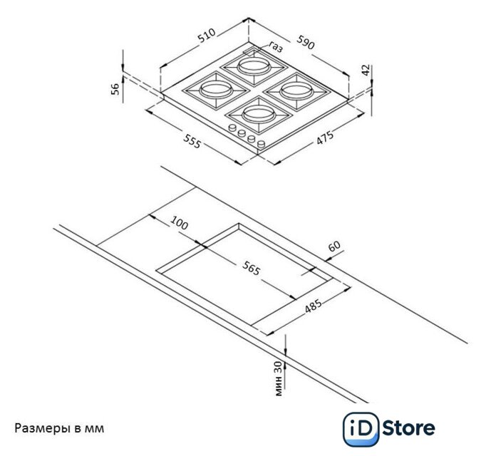 | Количество конфорок | 4 |