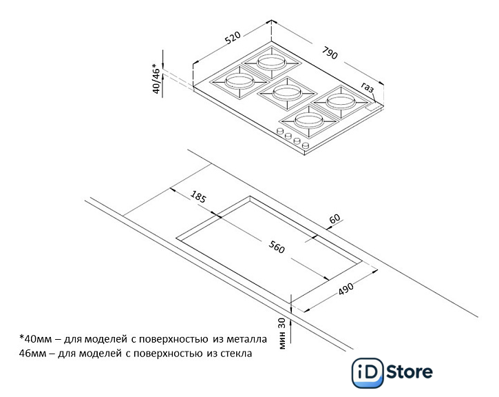 | Чугунные конфорки | нет |