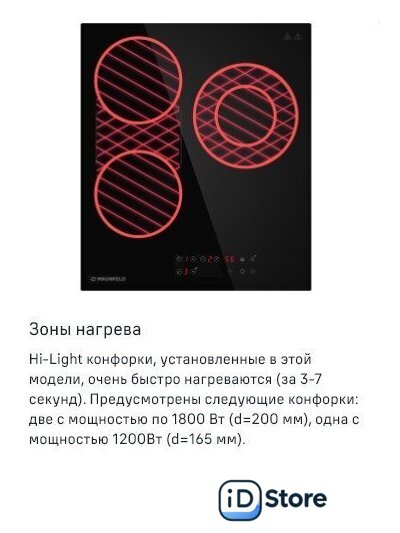 Подробная информация о конфорках | 2х1200Вт1х900/1800 Вт |