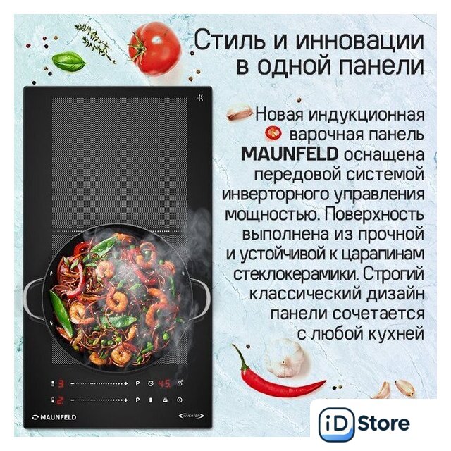 | Подробная информация о конфорках | 1х1500 (бустер 2000 Вт)1х2000 (бустер 2800 Вт) |