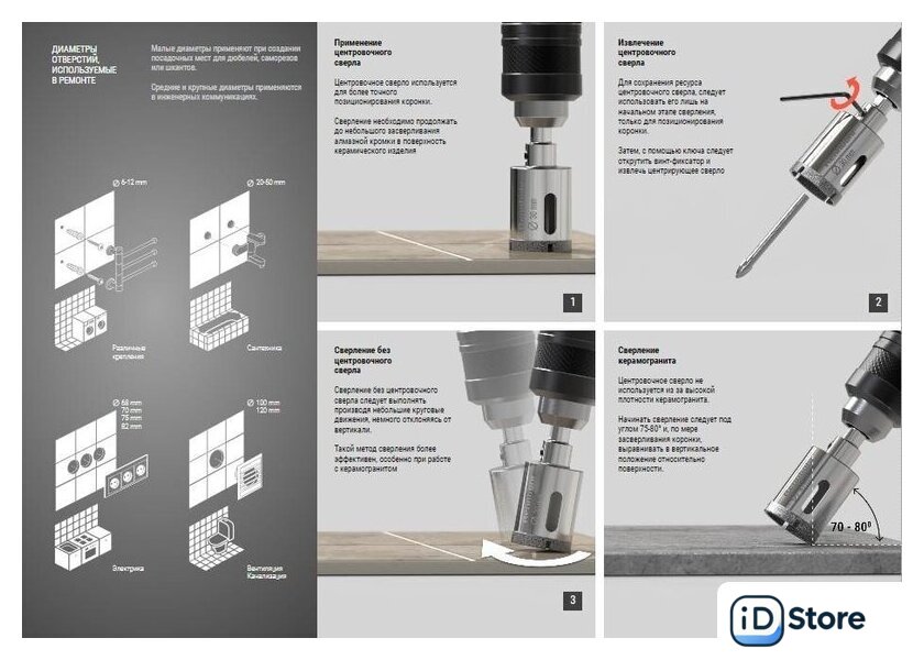 | Обрабатываемый материал | керамика, керамогранит |