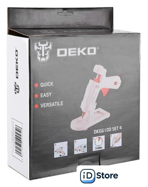 | Комплектация | Термоклеевой пистолет - 1 шт.Подставка под клеевой пистолет - 1 шт.Клеевые стержни 11 мм - 10 шт.ИнструкцияКоробка |