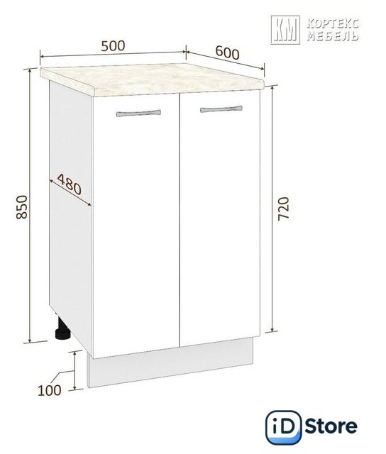 | Глубина нижних шкафов | 48 см |