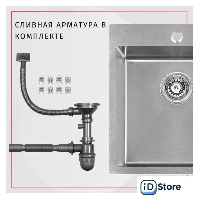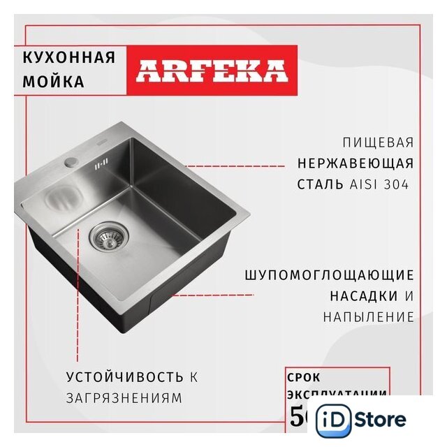 врезная на столешницу, нержавеющая сталь, размеры: 50x50 см, в шкаф 60 см
