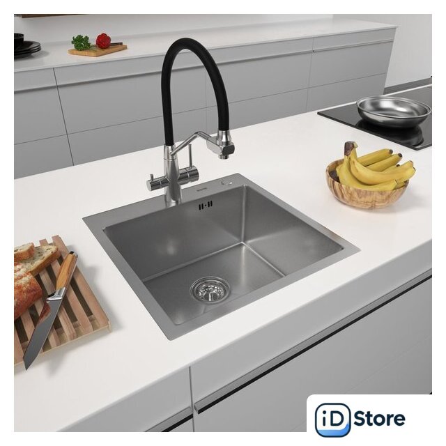 врезная на столешницу, нержавеющая сталь, фактура: с текстурой, размеры: 50x50 см, глубина чаши: 20 см, в шкаф шириной от 60 см