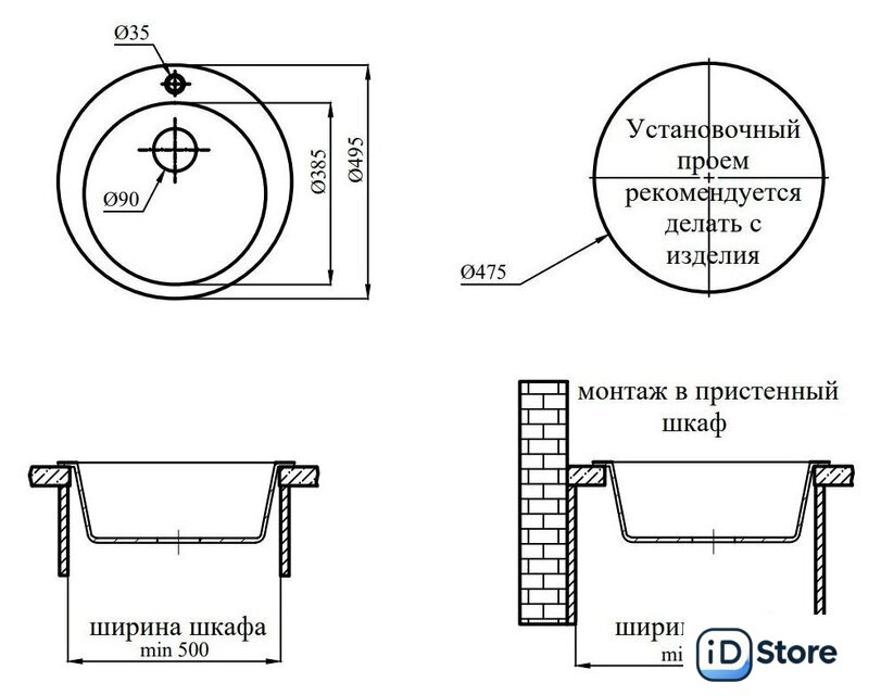 | Способ установки | врезная на столешницу |
