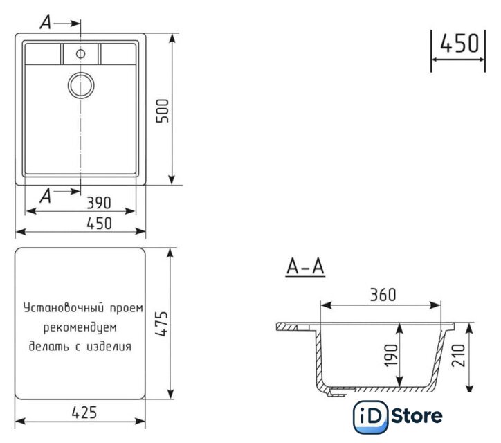 Ширина мойки | 45 см |