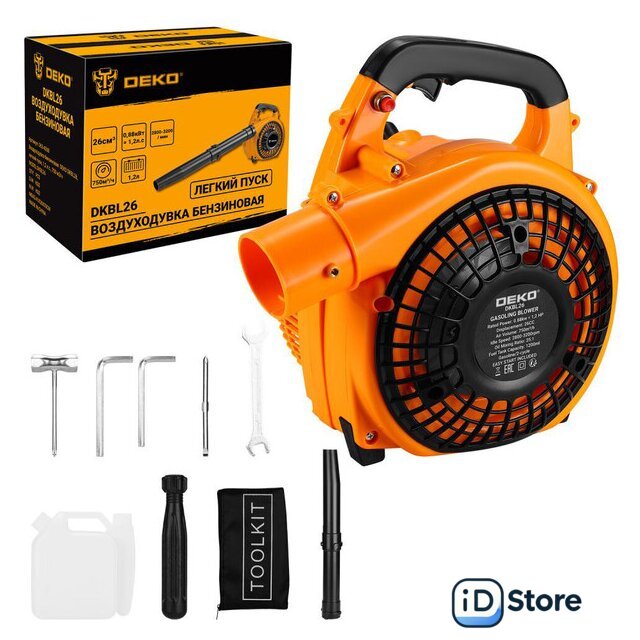 Комплектация | Воздуходувка - 1 шт.Верхняя труба подачи воздуха - 1 шт.Нижняя труба подачи воздуха - 1 шт.Емкость для топлива - 1 шт.Отвертка двусторонняя - 1 шт.Ключ гаечный - 1 шт.Ключ шестигранный - 2 шт.Ключ свечной - 1 шт.Сумка для инструментов - 1 шт.Руководство по эксплуатации - 1 шт.Коробка |