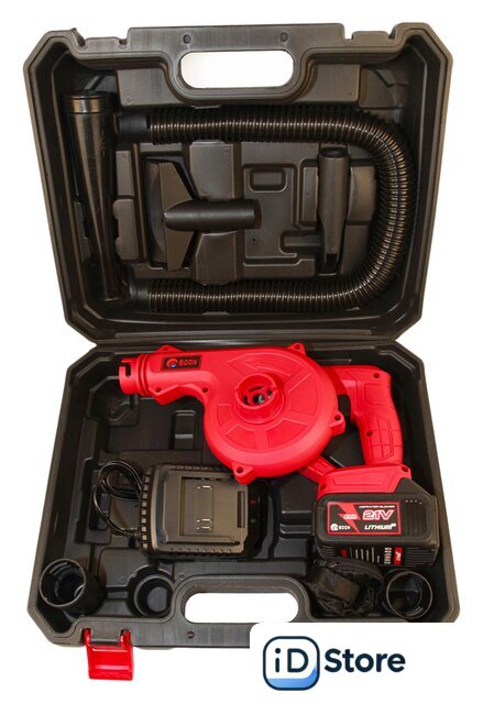 Комплектация | - воздуходувка;- аккумулятор 1 шт.;- зарядное устройство;- комплект насадок;- паспорт-инструкция;- пластиковый кейс. |
