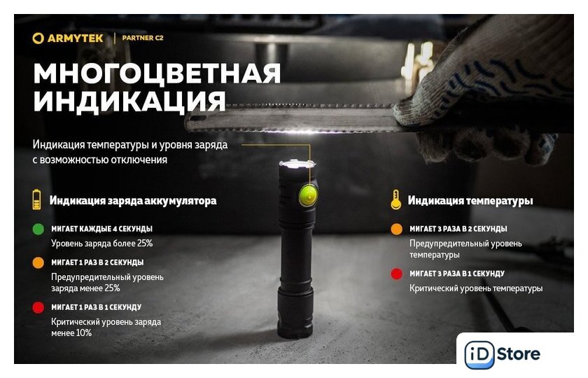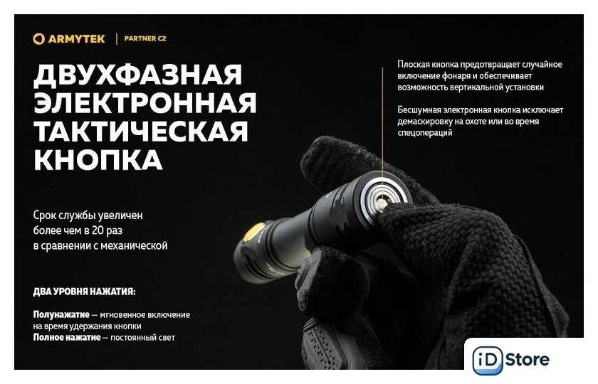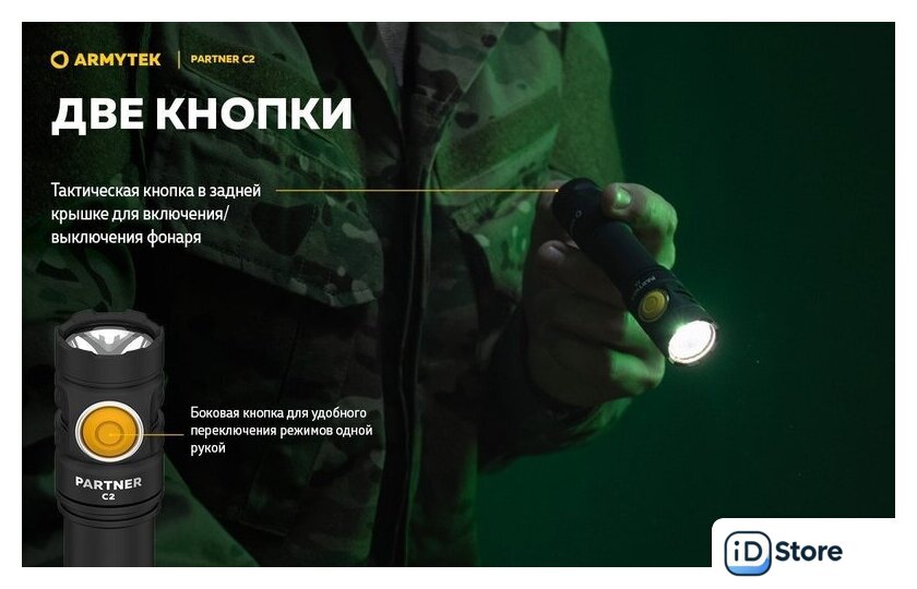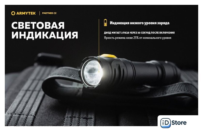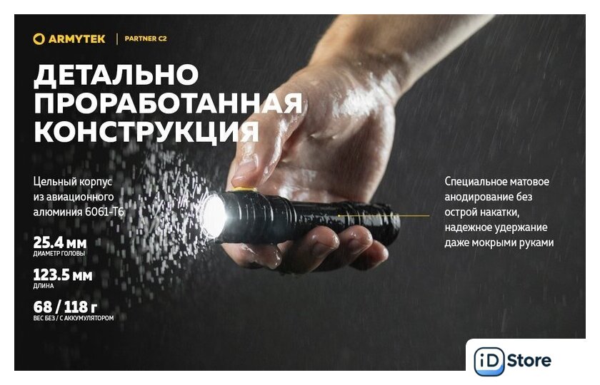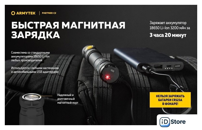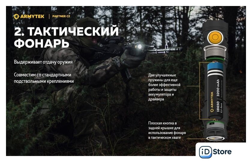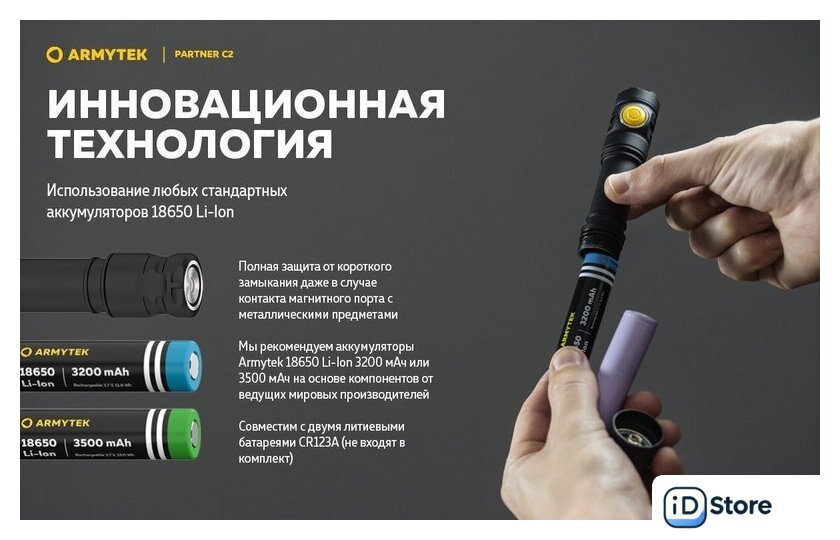 Типоразмер аккумулятора | 1x18650, 2xCR123A |