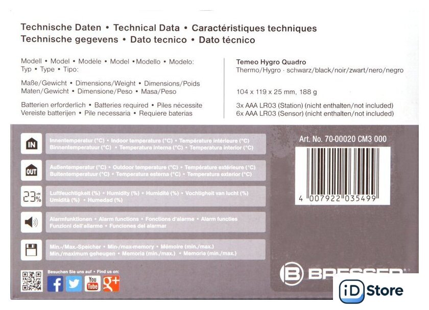 | Комплектация | МетеостанцияНаружный датчик – 3 шт.Инструкция по эксплуатации и гарантийный талон |