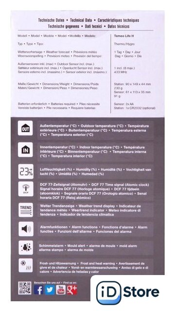 | Комплектация | МетеостанцияНаружный датчикСетевой адаптерИнструкция по эксплуатации и гарантийный талон |