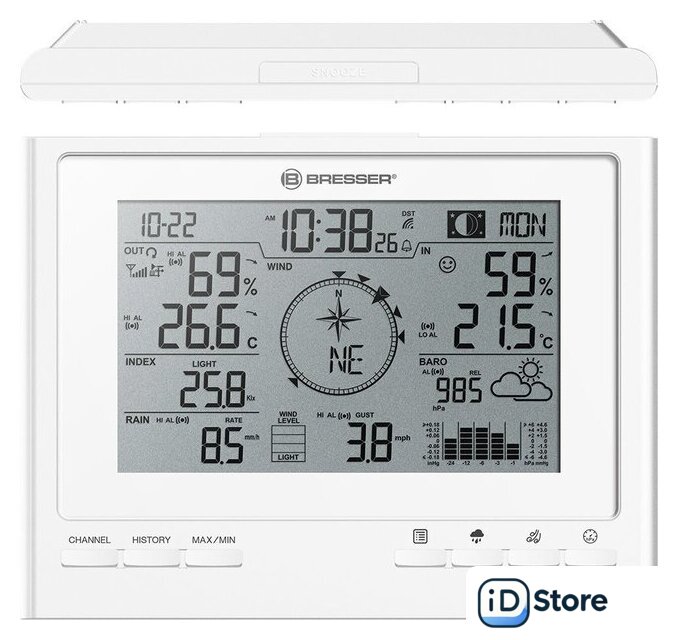 | Комплектация | метеостанция; наружный мультидатчик «7 в 1»; инструкция по эксплуатации и гарантийный талон |
