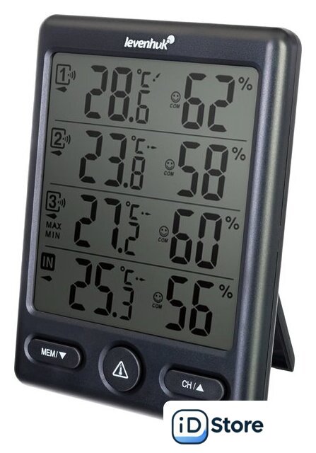 | Особенности | измерения температуры и влажности в 4 точках, ЖК-экран с индикацией уровня комфорта, предупреждающие сигналы с возможностью настройки диапазонов, фиксация максимальных и минимальных значений |
