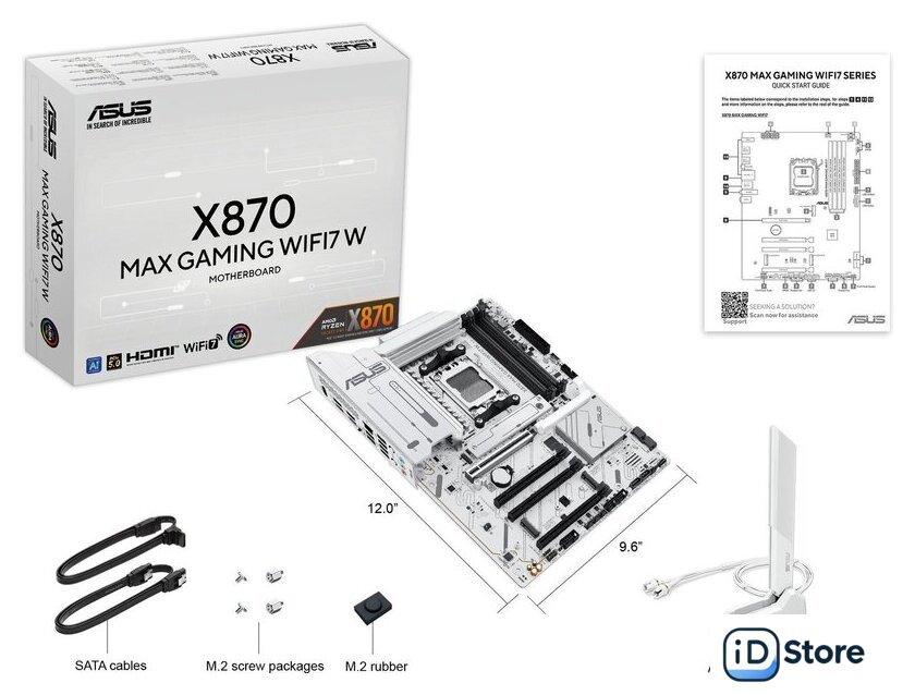 | Комплектация | - кабель SATA - Wi-Fi антенна - пакет с резиновыми уплотнителями для M.2 - пакет с винтами для M.2 SSD - документация |