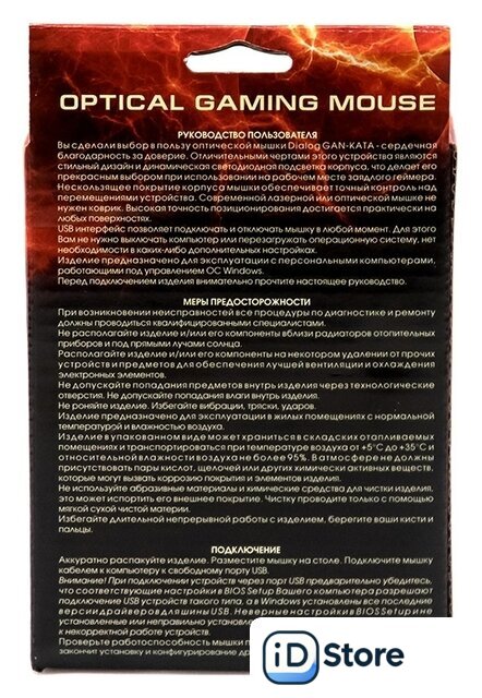 | Интерфейс подключения мыши | проводная USB |