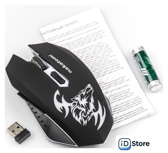 | Комплектация | - мышь - 1 шт;- приемное устройство - 1 шт;- батарейка АА - 1 шт;- документация. |