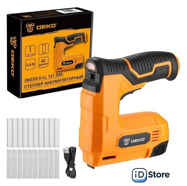 | Комплектация | - Степлер - 1 шт.- U-образные скобы 8мм - 1000 шт.- T-образные гвозди 10х1.2мм - 500 шт.- USB-кабель для зарядки - 1 шт.- Руководство по эксплуатации- Коробка |