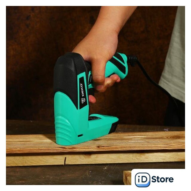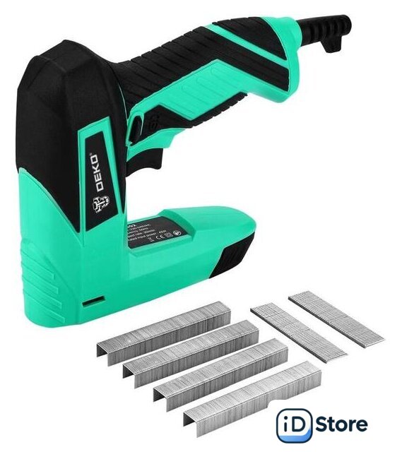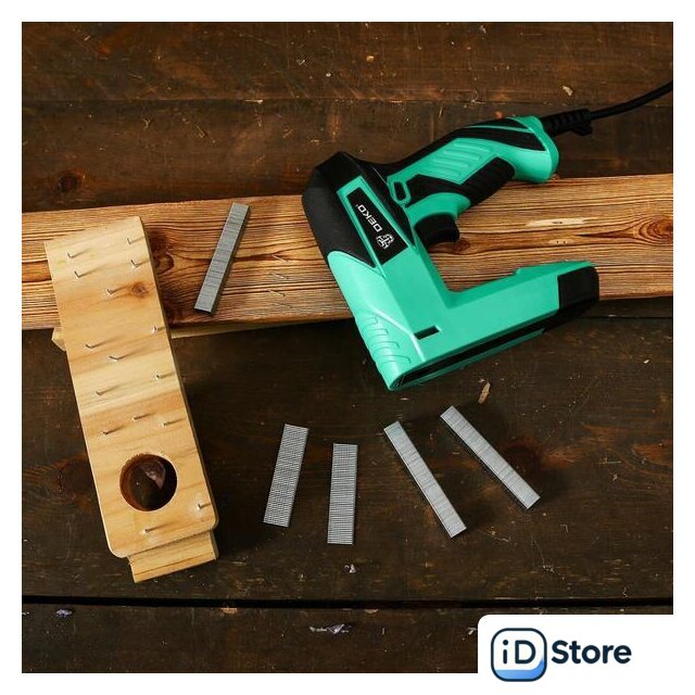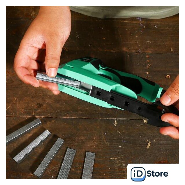 Комплектация | Степлер электрическийП-образные скобы 10 мм - 400 штT-образные гвозди 15 мм - 100 штИнструкцияКоробка |