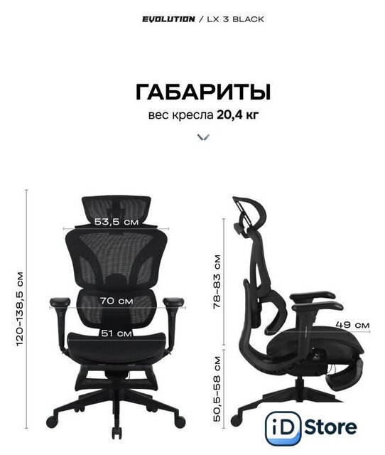 | Высота кресла | 120 — 138.5 см |