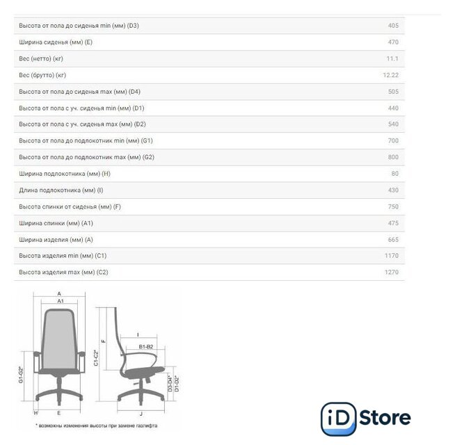 | Высота кресла | 117 — 127 см |