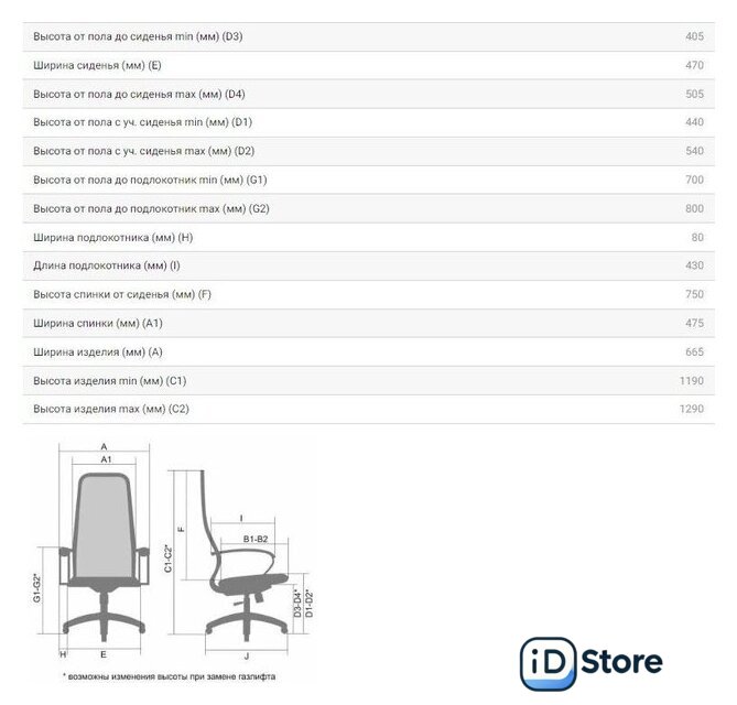 | Высота кресла | 119 — 129 см |