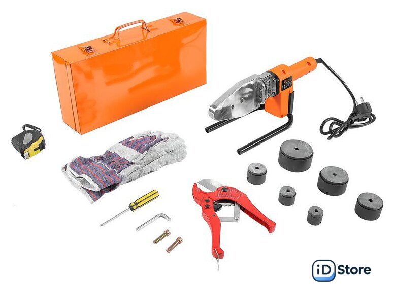 Комплектация | 6 насадок для сварки труб (Ø 20, 25, 32, 40, 50, 63 мм);шестигранный ключ;отвертка;труборез;перчатки;рулетка (3 м);кейс. |