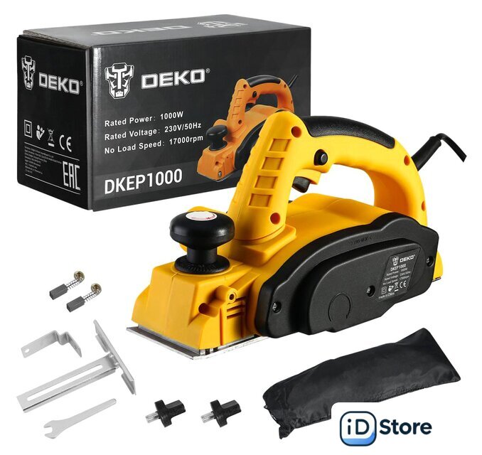 Комплект поставки | Рубанок - 1 штПараллельный упор (1 комплект) - 1 штМешок для сбора пыли - 1 штКлюч (гаечный) - 1 штКоробка |