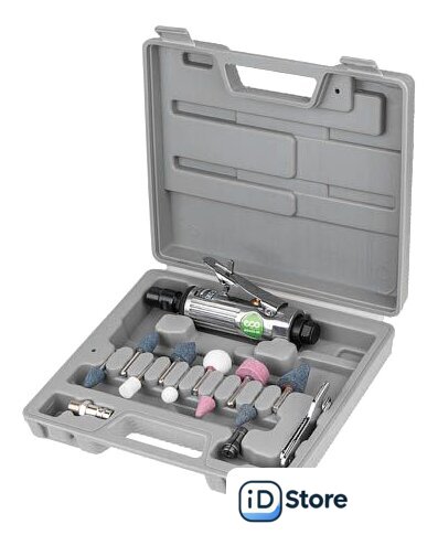 Комплект поставки | Шлифмашина прямаяЦанга 3 ммЦанга 6 мм5 шлифкамней с хвостовиком 3 мм5 шлифкамней с хвостовиком 6 ммНиппельКлюч монтажный - 2 штПластмассовый чемоданИнструкция |