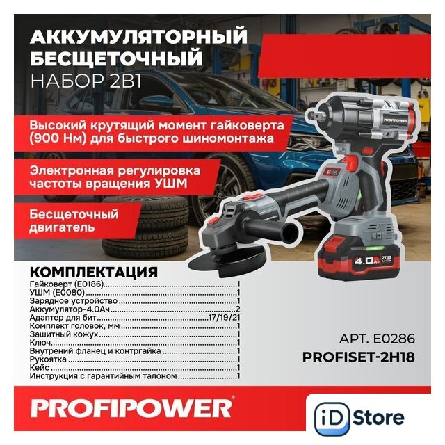 | Состав набора | гайковерт, угловая шлифовальная машина |