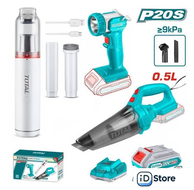 Комплектация | - Пылесос TOTAL TVLI201261 - 1 шт.- Пылесос TOTAL TVLI1106 - 1 шт.- Фонарь TOTAL TWLI2023 - 1 шт.- Аккумулятор TFBLI20011 2,0 Ач - 1 шт.- Зарядное устройство TFCLI2001 - 1 шт.- Прямая насадка для TVLI1106 - 1 шт.- Щетка для пыли с мягкой щетиной для TVLI1106 - 1 шт.- Щелевая насадка TVLI201261 - 1 шт.- Щетка для пыли с мягкой щетиной TVLI201261 - 1 шт.- USB кабель для зарядки TVLI1106 - 1 шт.- Коробка |