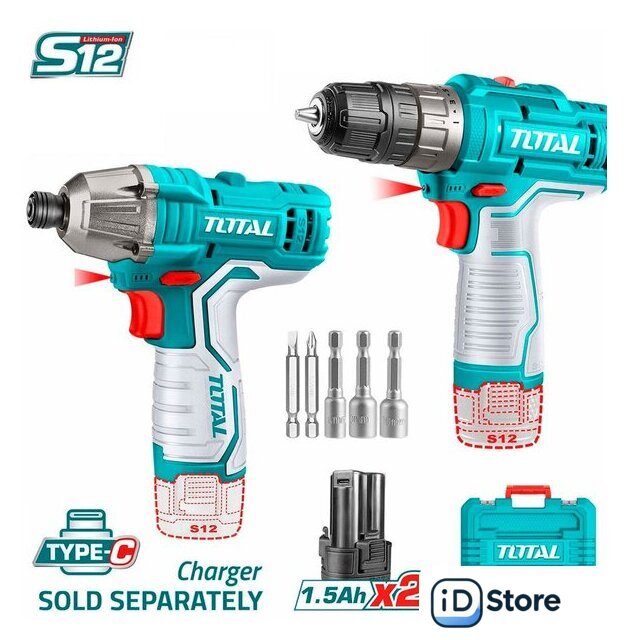 Комплектация | - Дрель-шуруповерт TDLI12202 - 1 шт.- Винтоверт TIRLI12015 - 1 шт.- Аккумулятор TBLI12153 1,5 Ач - 2 шт.- Бита 65 мм - 2 шт.- Торцевые насадки - 3 шт.- Кейс. |