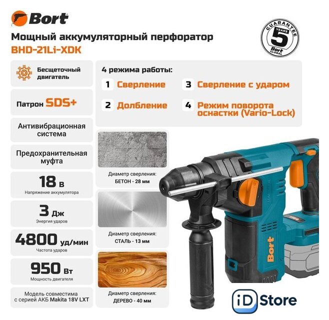 | Комплект поставки | - Дополнительная рукоятка (1 шт), - Глубиномер (1 шт), - Инструкция (1 шт) |