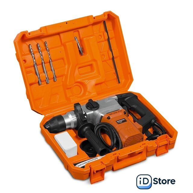 | Комплект поставки | - Перфоратор – 1 шт.- Дополнительная рукоятка – 1 шт.- Измеритель глубины сверления/ бурения – 1 шт.- Буры 150 мм 8/10/12 мм - 3 шт.- Долото – 1 шт.- Пика – 1 шт.- Ограничительная линейка – 1 шт.- Дополнительная рукоятка – 1 шт.- Дополнительный зубчато-винтовой патрон с адаптером – 1 шт.- Ключ для патрона – 1 шт.- Смазка – 1 шт.- Пылезащитный колпачок – 1 шт.- Угольные щетки – 1 комп.- Кейс – 1 шт.- Руководство пользователя – 1 шт.- Гарантийный талон – 1 шт. |
