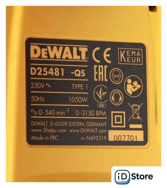 | Комплект поставки | - Перфоратор;- Боковая рукоятка;- Чемодан. |