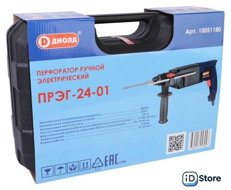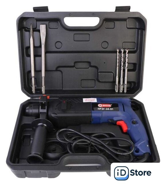 Комплект поставки | - Руководство по эксплуатации 1- Адреса гарантийных мастерских 1- Щетка 2- Глубиномер 1- Зубило плоское 1- Зубило пикообразное 1- Кольцо пылезащитное 1- Упаковка (кейс) 1- Буры с хвостовиком типа SDS-plus (6 мм; 8 мм; 10 мм) 3- Дополнительная рукоятка 1- Винт М6x20 резьба левая 1- Перфоратор 1 |