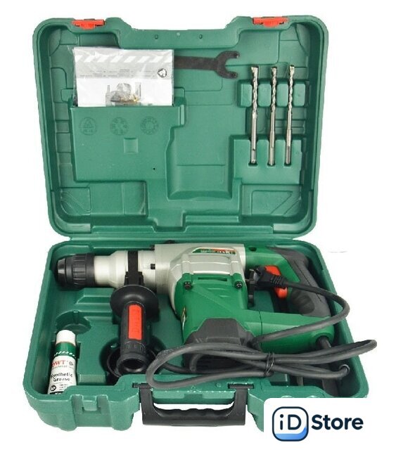 Комплект поставки | - Перфоратор 1 шт.- Инструкция по эксплуатации 2 шт.- Ограничитель глубины 1 шт.- Дополнительная рукоятка 1 шт.- Ключ фланцевый 1 шт.- Пылеулавливатель 1 шт.- Контейнер со смазкой 1 шт.- Сверла по бетону (д: 8, 10, 12) 3 шт.- Зубила DWT-Plus (пика, плоское) 2 шт. |