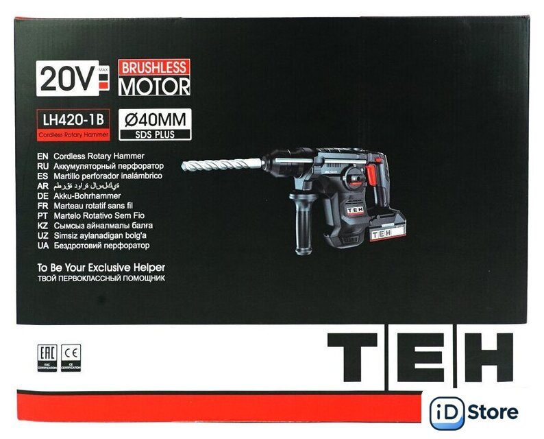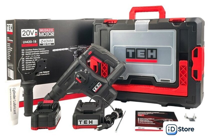 | Комплект поставки | - Перфоратор;, - Аккумуляторная батарея LB 4.0 Ач;, - Зарядное устройство LBC02;, - Рукоятка дополнительная;, - Ограничитель глубины сверления;, - Смазка для буров;, - Гаечный ключ;, - Руководство по эксплуатации;, - Пластиковый кейс STACK. |