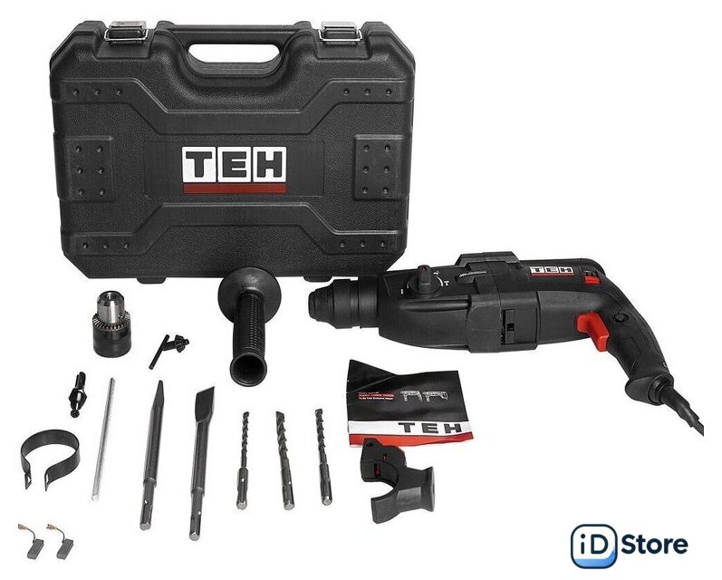 | Комплект поставки | - Перфоратор;, - Адаптер ключевого патрона;, - Рукоятка дополнительная;, - Набор оснастки;, - Ограничитель глубины;, - Патрон трехкулачковый;, - Ключ патрона;, - Руководство по эксплуатации;, - Кейс. |