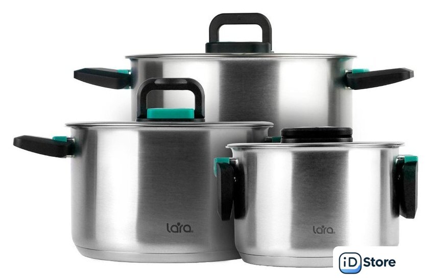 | Состав набора | 3 кастрюли с крышками объемом 2.0, 3.8, 6.4 л |