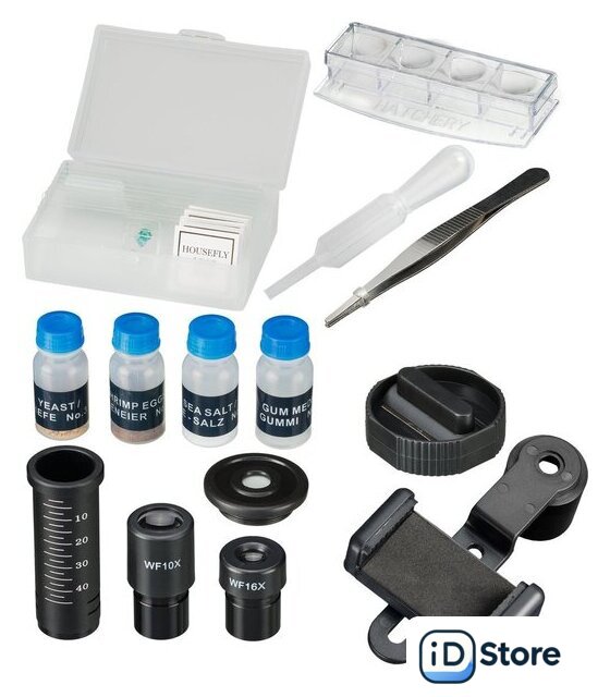 | Состав набора | микроскоп, окуляры, объективы, линза Барлоу, набор для опытов, инструменты, адаптер для смартфона, кейс для транспортировки и хранения |