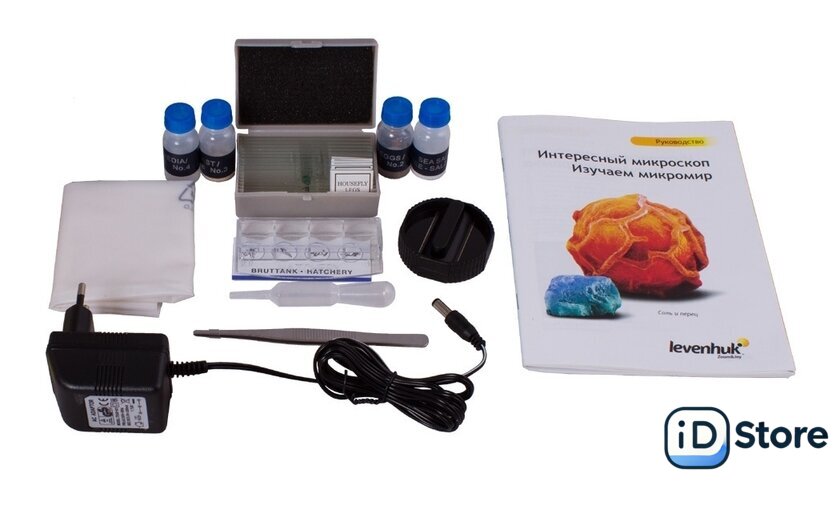 | Состав набора | Комплектация:МикроскопОбъективы: 4х, 10х и 40хsОкуляр: WF16xПредметный столик с зажимамиДиск с диафрагмамиКонденсорВстроенные нижний и верхний осветители на светодиодахСетевой адаптер (питание 220 В, 50 Гц)Батарейки: 3 шт. типа ААНабор для опытов Levenhuk K50Инструкция по эксплуатации и гарантийный талонНабор для опытов Levenhuk K50:Руководство «Интересный микроскоп. Изучаем микромир»ПинцетИнкубатор для артемииМикротомФлакон с дрожжамиФлакон со смолой для изготовления препаратовФлакон с морской сольюФлакон с артемией (морским рачком)5 готовых образцов и 5 чистых предметных стеколПипеткаПылезащитный чехол |