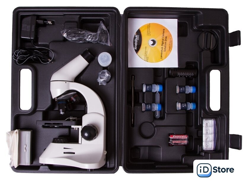 | Состав набора | Комплектация:МикроскопОбъективы: 4х, 10х и 40хsОкуляр WF16хЛинза Барлоу 2xПредметный столик с зажимамиДиск с диафрагмамиКонденсорВстроенные нижний и верхний осветители на светодиодахСетевой адаптер (питание 220 В, 50 Гц)Батарейки: 2 шт. типа ААПластиковый кейсНабор для опытов Levenhuk K50Цифровая камера 2 МпиксПО для Windows (программа Levenhuk)USB-кабельИнструкция по эксплуатации и гарантийный талонНабор для опытов Levenhuk K50:Руководство «Интересный микроскоп. Изучаем микромир»ПинцетИнкубатор для артемииМикротомФлакон с дрожжамиФлакон со смолой для изготовления препаратовФлакон с морской сольюФлакон с артемией (морским рачком)5 готовых образцов и 5 чистых предметных стеколПипеткаПылезащитный чехол |
