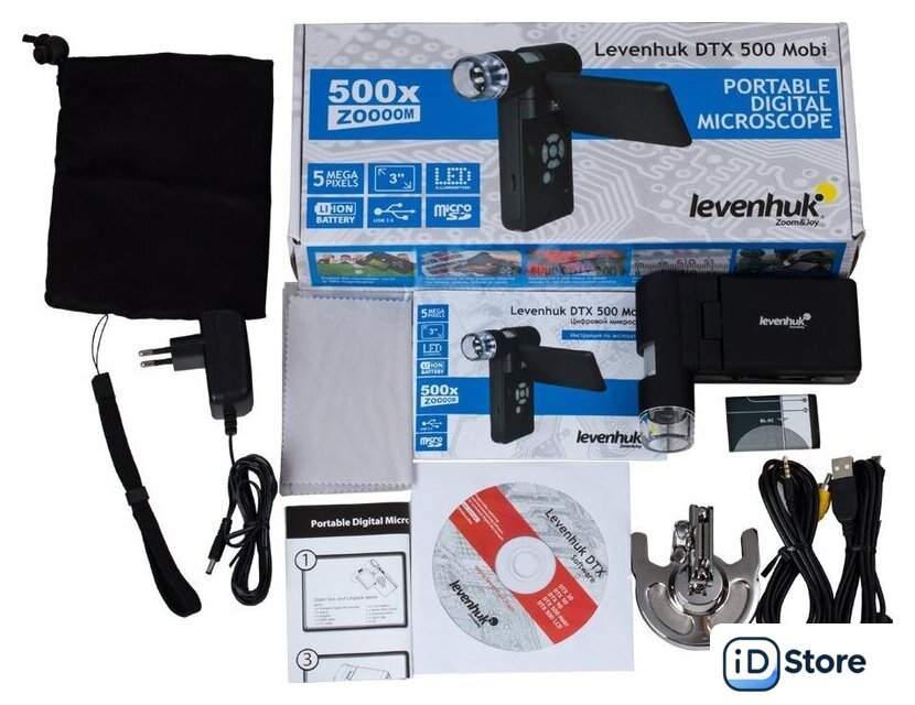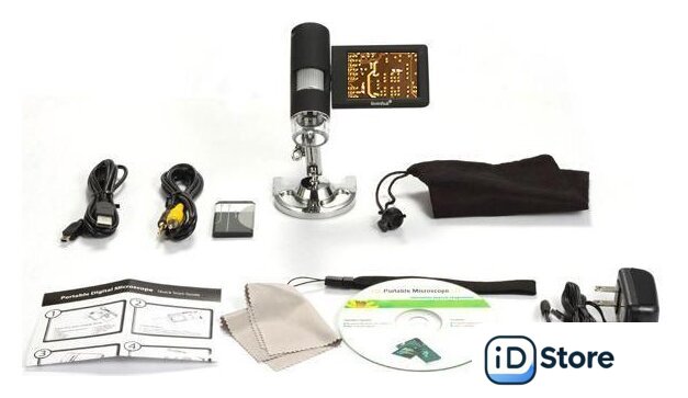 | Состав набора | микроскоп, штатив, адаптер, USB-кабель, AV-кабель, литий-ионный аккумулятор, ремешок на руку, защитный чехол, салфетка для оптики, компакт-диск с программным обеспечением, инструкция по эксплуатации и гарантийный талон |