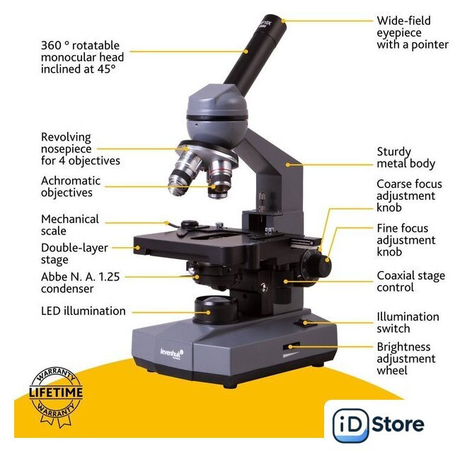| Состав набора | микроскоп, ахроматические объективы: 4х, 10х, 40х и 100х (масляная иммерсия), широкоугольные окуляры с указателем: WF10x и WF16x, фильтры: синий, зеленый, желтый, флакон иммерсионного масла, сетевой адаптер, пылезащитный чехол, инструкция по эксплуатации и гарантийный талон |