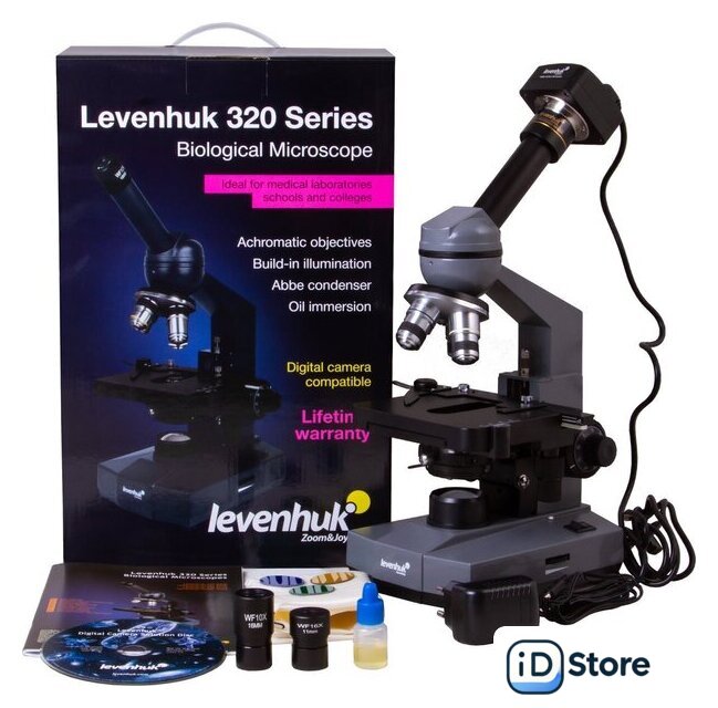 | Состав набора | микроскоп, ахроматические объективы: 4х, 10х, 40х и 100х (масляная иммерсия), широкоугольные окуляры с указателем: WF10x и WF16x, фильтры: синий, зеленый, желтый, флакон иммерсионного масла, сетевой адаптер, пылезащитный чехол, цифровая камера, адаптер для камеры, USB-кабель для камеры, диск с программным обеспечением, инструкция по эксплуатации и гарантийный талон |