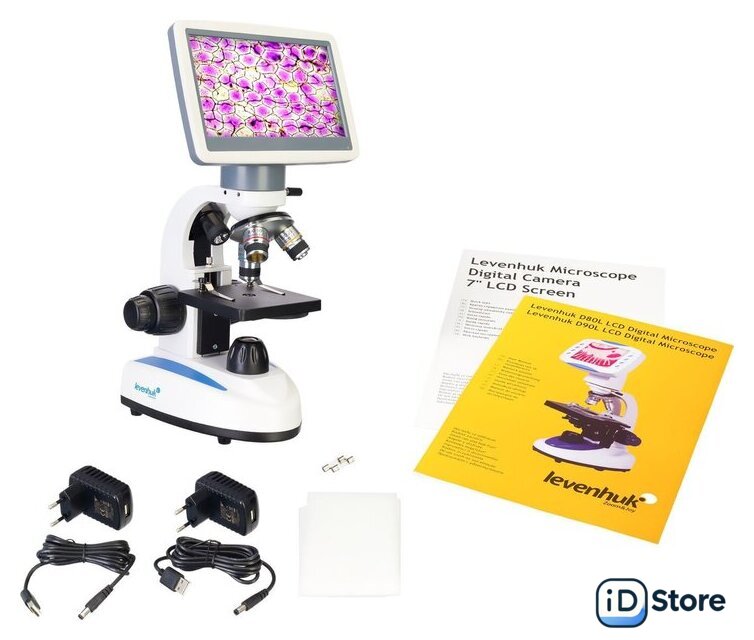 | Состав набора | микроскоп с цифровой камерой 2 Мпикс и ЖК-экраном, ахроматические объективы 4х, 10х, 40x, конденсор N.A. 0,65 с диском с диафрагмами, сетевой шнур, карта памяти SD 16 ГБ, адаптер и сетевой шнур для питания камеры, пылезащитный чехол, инструкция по эксплуатации и гарантийный талон |
