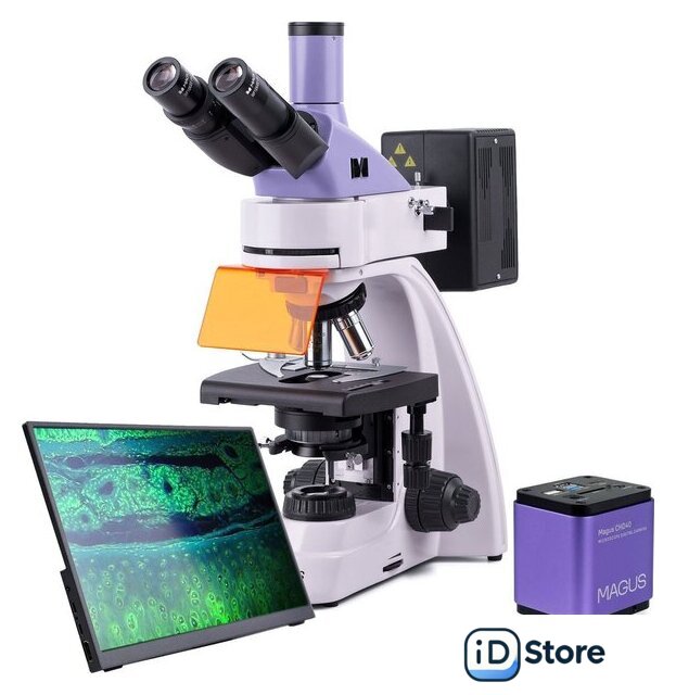 | Состав набора | цифровая камера MAGUS CHD40, монитор MAGUS MCD40, штатив с источником проходящего света, механизмом фокусировки, предметным столиком, кронштейном конденсора и револьвером объективов, конденсор Аббе, люминесцентная насадка, фонарь ртутной лампы, тринокулярная визуальная насадка, объективы, окуляры, наглазники, защитный экран, пластина светового барьера, черная защитная пластина, переходник под крепление C-mount, светофильтры, флакон с иммерсионным маслом, блок поджига ртутной лампы, сетевые шнуры питания, пылезащитный чехол, инструкция по эксплуатации и гарантийный талон. |