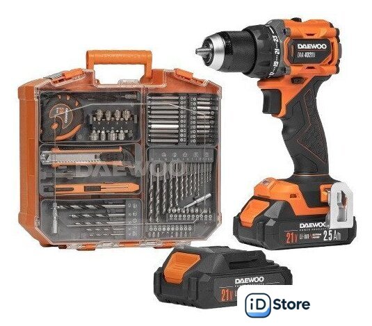 Комплектация | - Дрель-шуруповерт - 1 шт.- Аккумулятор 2,5 Ач - 2 шт.- Зарядное устройство - 1 шт.- Комплект бит и инструмента - 1 шт.- Скоба для крепления - 1 шт.- Инструкция- Кейс |
