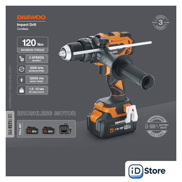 Комплектация | - Дрель-шуруповерт - 1 шт.- Аккумулятор 4,0 Ач - 2 шт.- Зарядное устройство - 1 шт.- Дополнительная рукоятка - 1 шт.- Скоба для крепления - 1 шт.- Инструкция- Кейс |